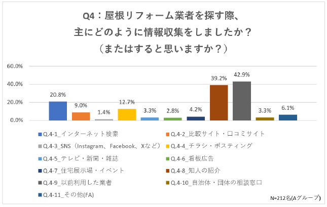 Q4:屋根リフォーム業者を探す際、主にどのように情報収集をしましたか?(またはすると思いますか?)(複数回答)